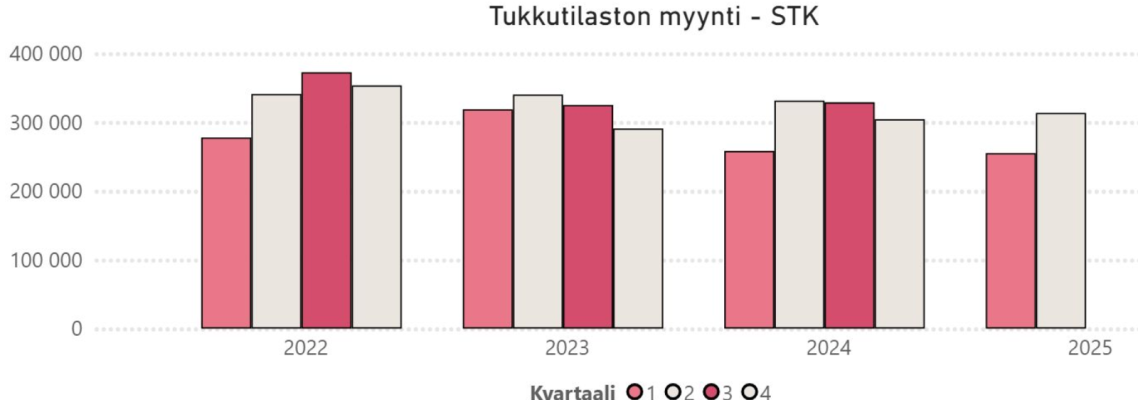 Vuoden ensimmäisen puoliskon sähköteknisen tukkumyynnin arvo oli 569 miljoonaa euroa, mikä on 3,5 prosenttia vähemmän kuin vastaavalla jaksolla vuonna 2024. Toisen kvartaalin myynnin arvo oli 5,4 prosenttia pienempi kuin vuotta aiemmin.